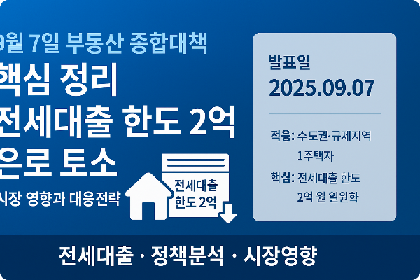 9월 7일 발표된 부동산 종합대책은 전세대출을 수도권 1주택자 기준 2억 원으로 일원화하면서, 시장 전반의 변화를 예고하고 있습니다.